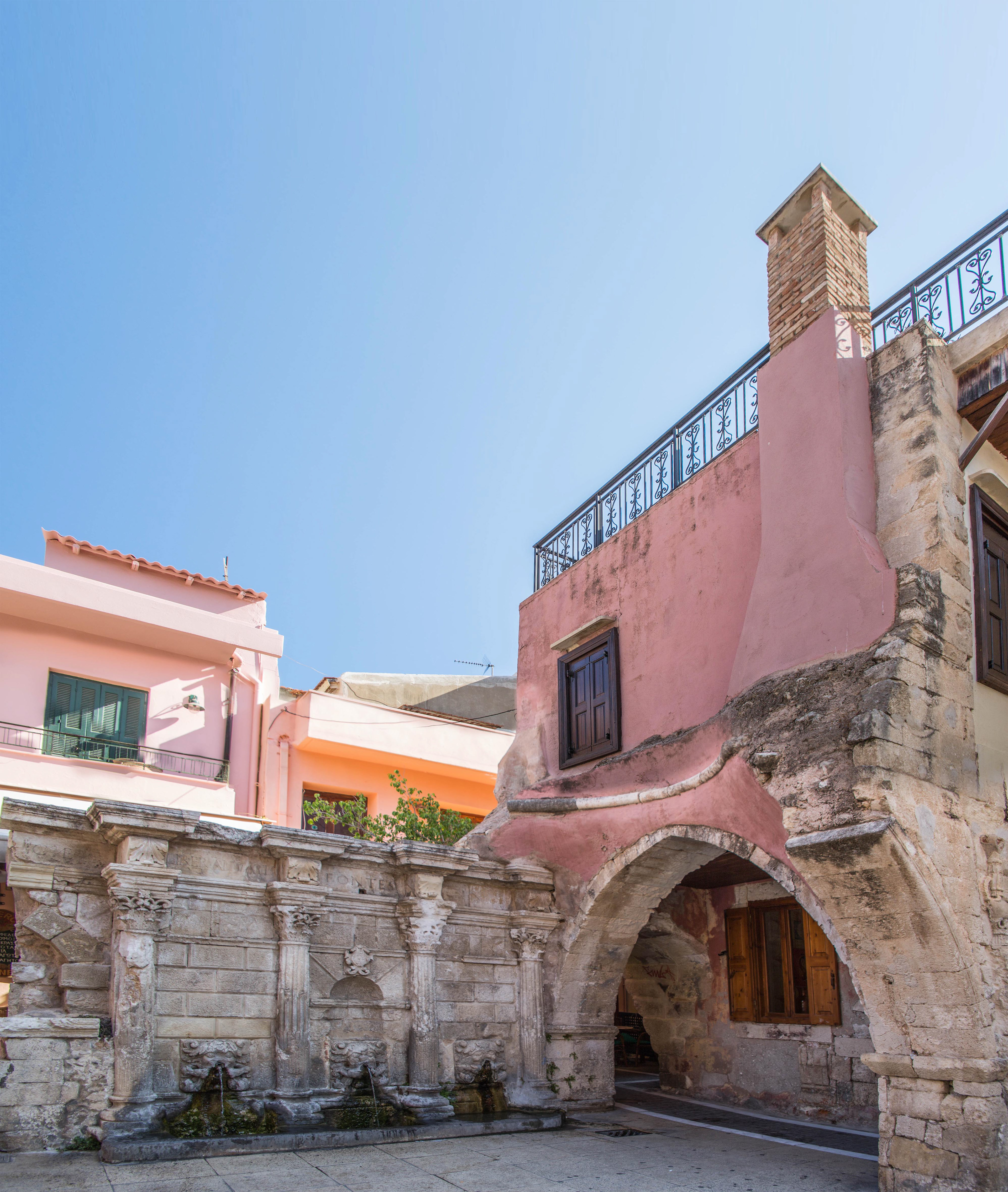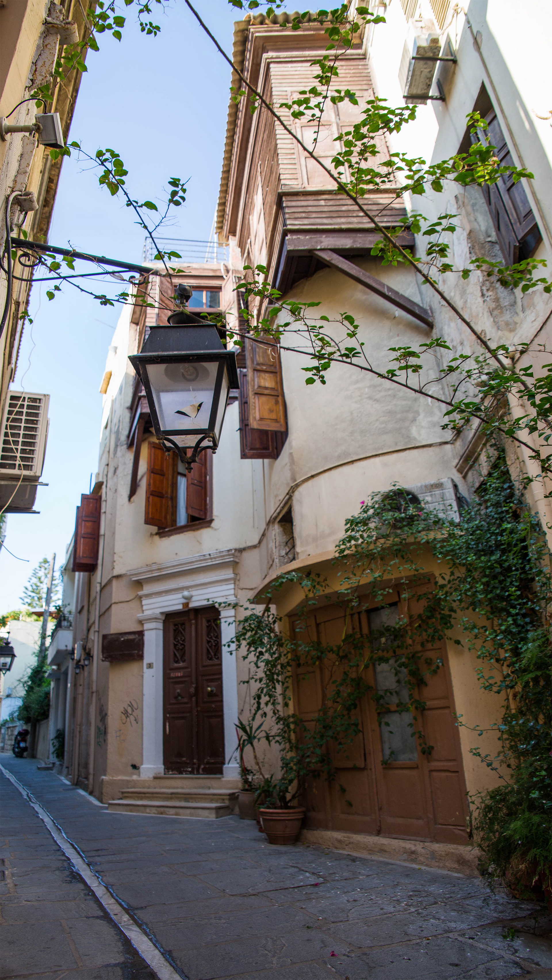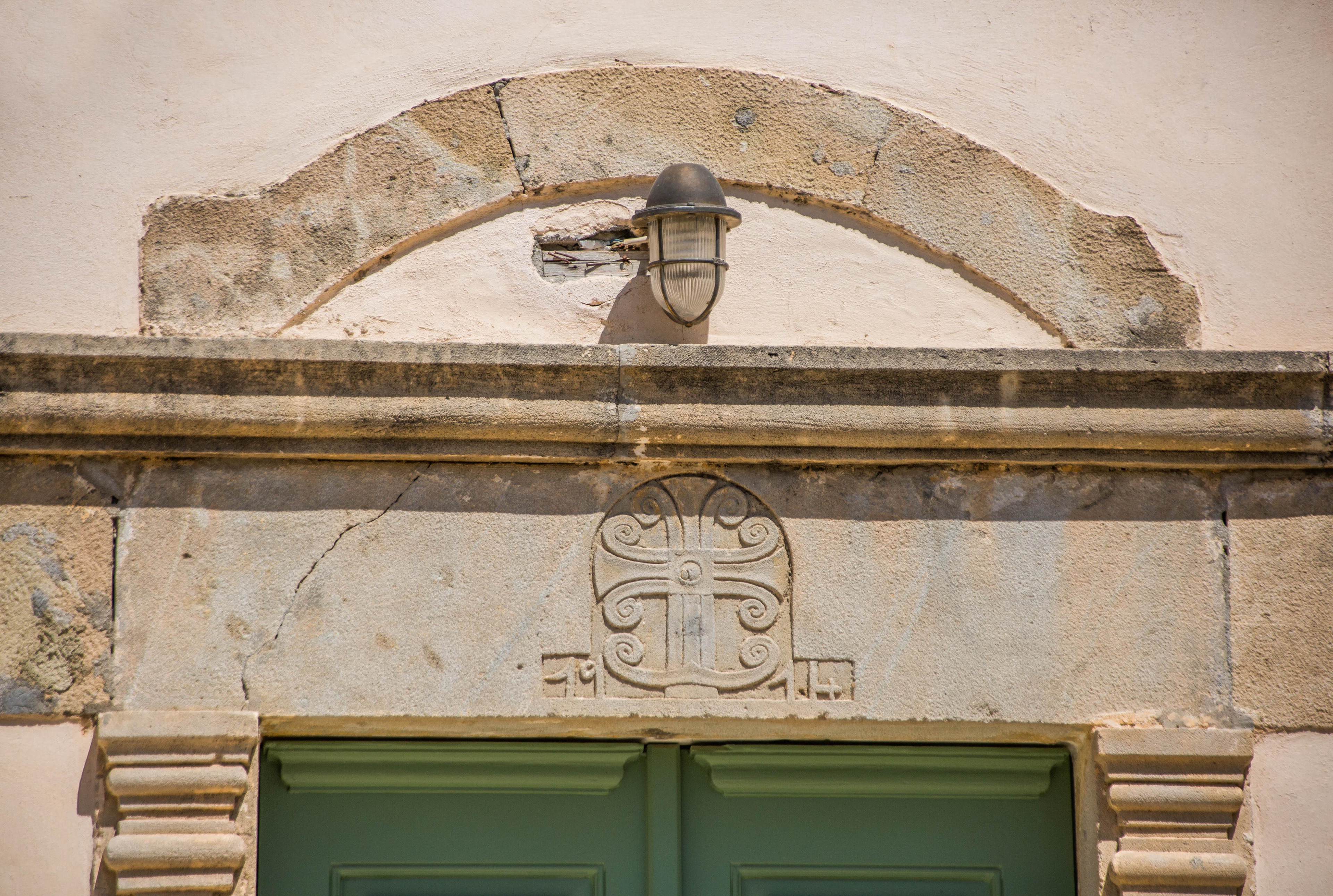 Façade d'une maison crétoise recouverte de mosaïques