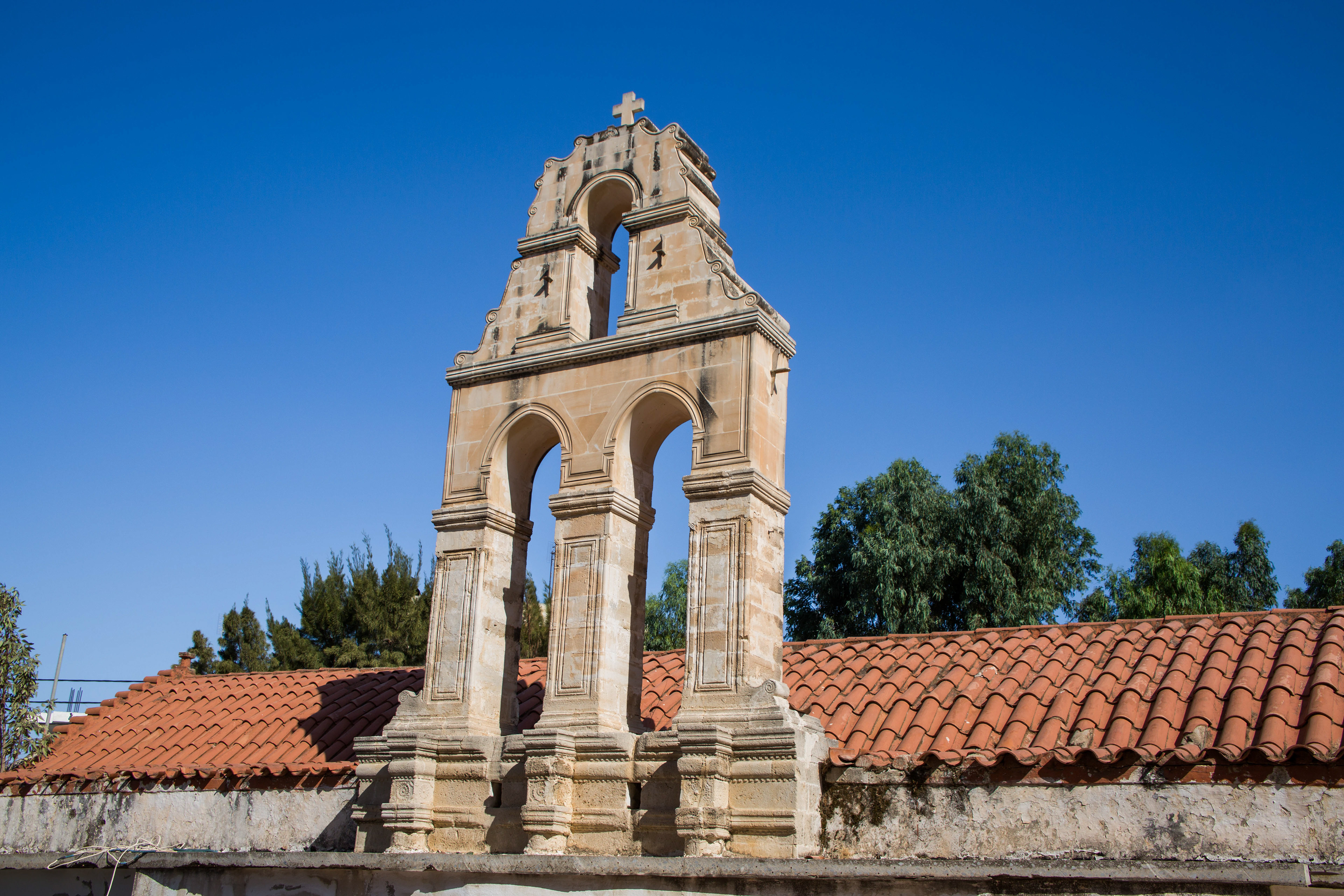 Entouré d'épaisses et hautes murailles et situé sur un plateau difficilement accessible, le monastère est une véritable forteresse.